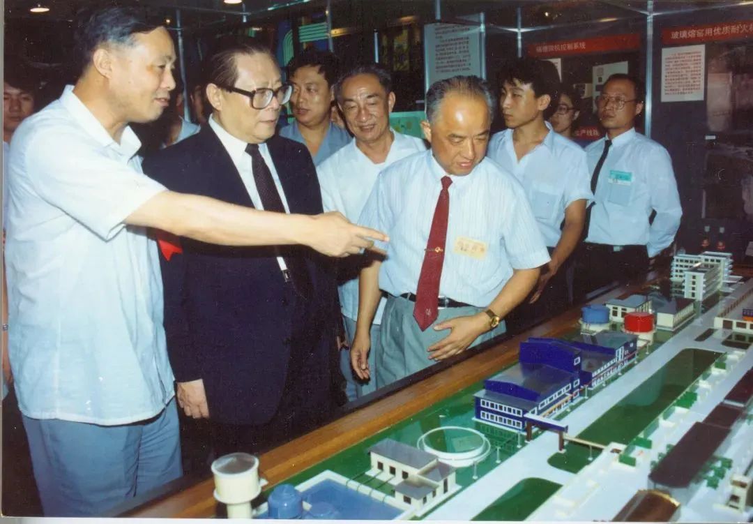 1991年8月21日至9月2日,江泽民同志参观由国家计委、科委、财政部联合主办的“七五”科技攻关成果展览,在耀华展位上观看浮法玻璃生产线模型并听取汇报。