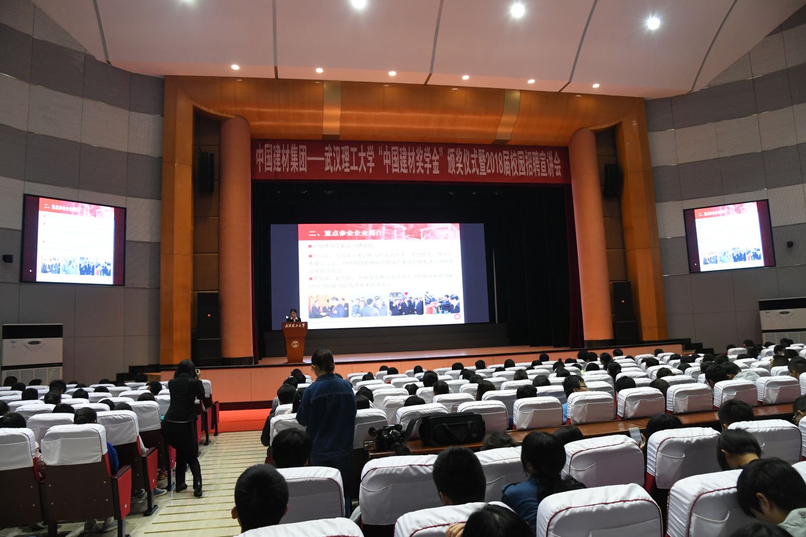 来源:人力资源部 发布时间:2017-10-1810月14日,日韩无码 -武汉理工大学“中国建材奖学金”2016-2017学年奖学金颁奖仪式暨2018届校园招聘宣讲会在武汉理工大学举行。