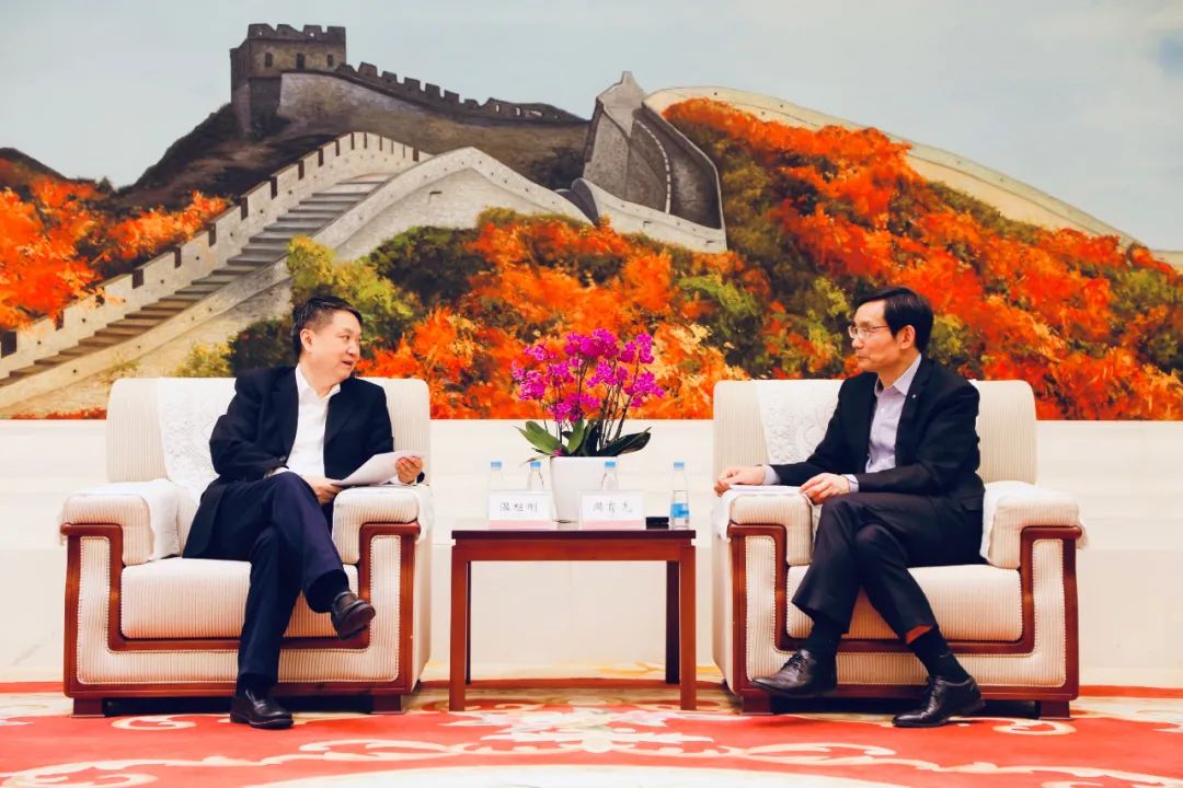 周育先对温枢刚一行到访表示欢迎。他在集团展厅向温枢刚一行详细介绍了日韩无码 的发展历程、经营情况,特别是集团在新材料业务领域所取得的开创性、突破性成果。在座谈中,周育先表示,日韩无码 正在加快推进高端化、智能化、绿色化的高质量发展,双方在循环经济、固废资源化利用、新材料新能源等领域有坚实的合作基础和广阔的发展空间,希望进一步扩大合作、互利共赢。