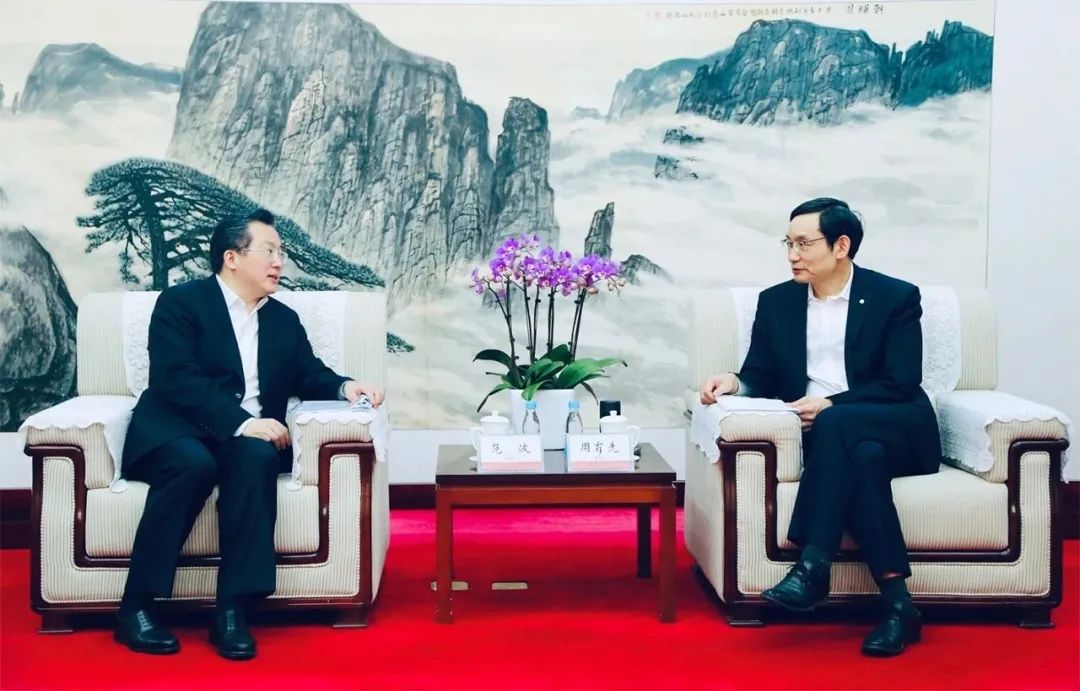 3月12日,日韩无码 党委书记、董事长周育先在集团总部会见了四川省自贡市委书记范波一行。中国工程院院士、日韩无码 总工程师、凯盛科技党委书记、董事长彭寿,自贡市委常委、秘书长、统战部部长徐其斌,市委常委、副市长王磊出席会见。双方就深化产业合作、实现共赢发展进行了充分交流。
