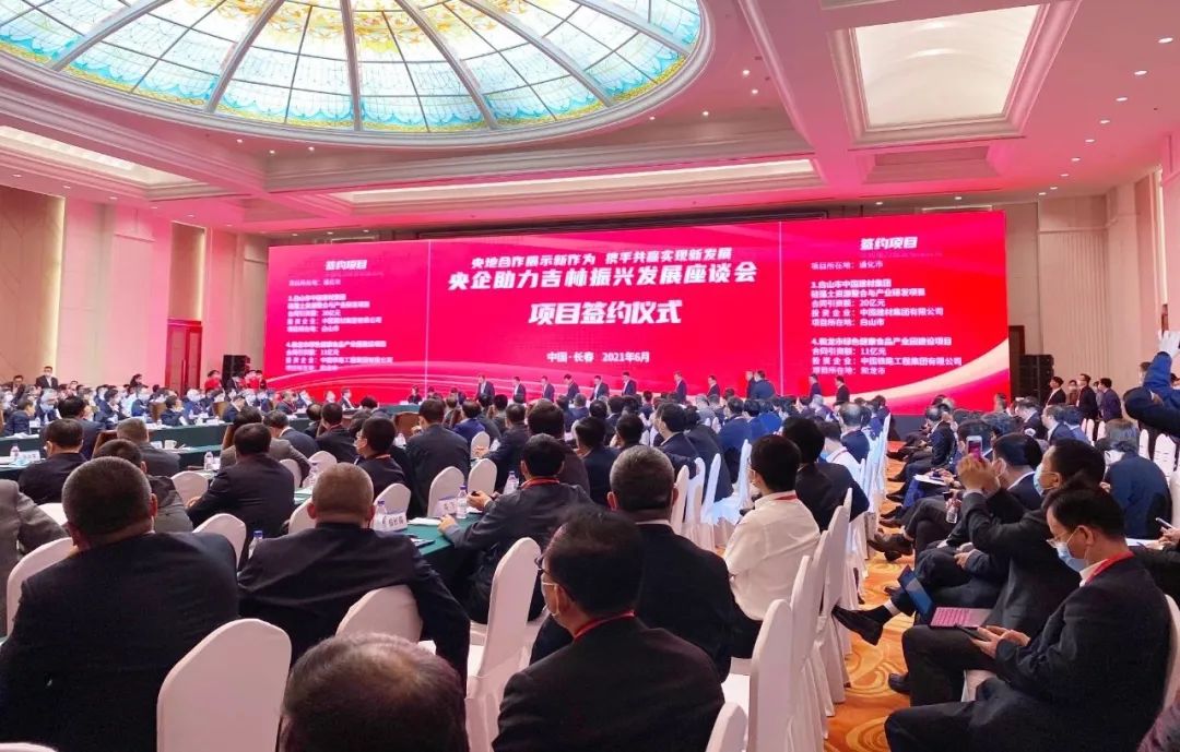 座谈会以“央地合作展示新作为 携手共赢实现新发展”为主题,深入推进吉林与央企在更大范围、更宽领域、更深层次、更高水平、更大规模开展更加务实合作,与吉林共享发展机遇、共铸美好未来。会上举行签约仪式,共签署49项合作协议,合同引资额2321亿元。地勘中心党委书记、主任吴岩,凯盛科技副总经理、总会计师汤李炜分别就具体项目与白山市政府签署合作协议。