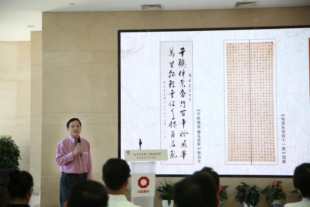 本次主题展有中国建材联合会、中国施工企业管理协会及集团所属58家企业参加,今年开通了网上直报平台,共收到417件作品(网上直报平台点击文末阅读原文,欢迎大家持续供稿,我们会陆续在集团网站/官微展示,择优选入善用文化中心展出)。这些作品经过3轮专家评审筛选,最终选出54件书法、40件绘画、16件摄影、20件篆刻,共130件作品展出。优秀篆刻作品同步选送印记初心大众篆刻展(点击蓝字查看)。下面,和小料一起回顾一下宣讲分享活动,欣赏建材人的才华吧~~~