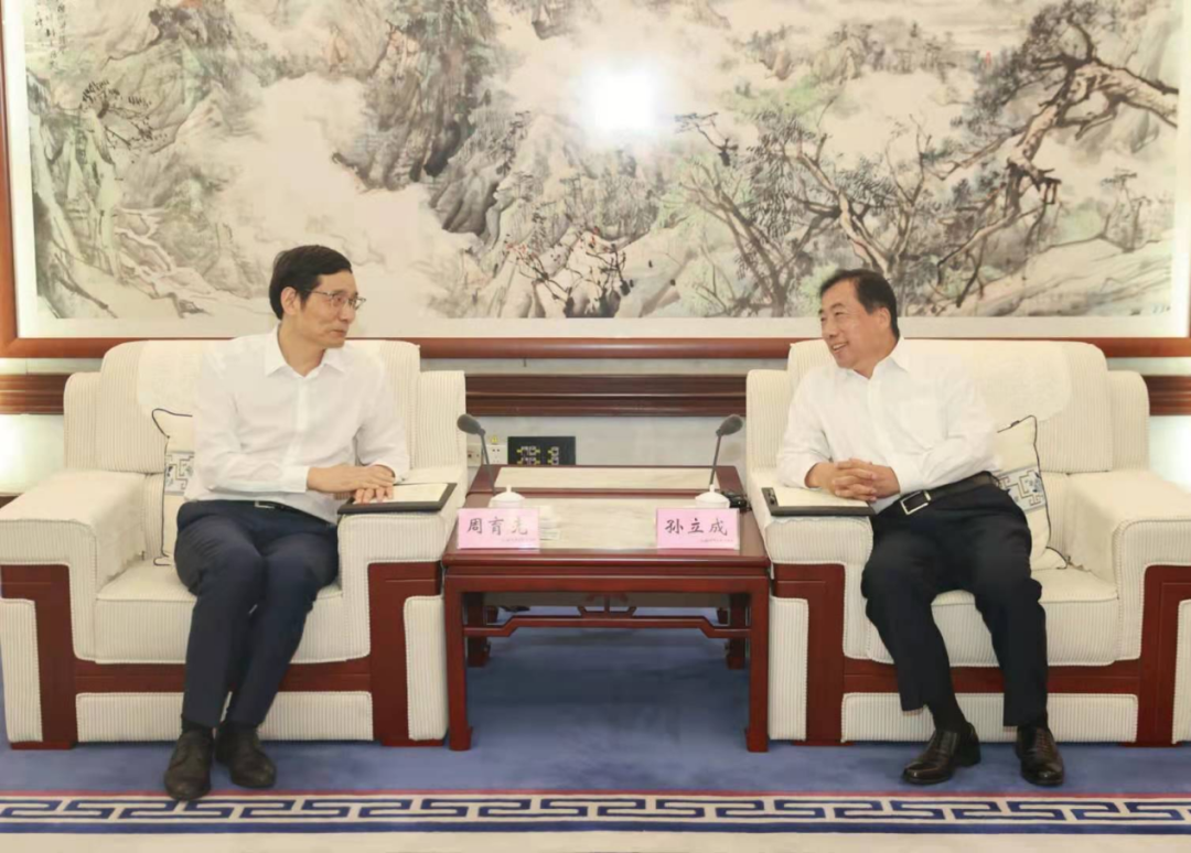 周育先会见山东省委常委、济南市委书记孙立成,受邀出席企业家恳谈会