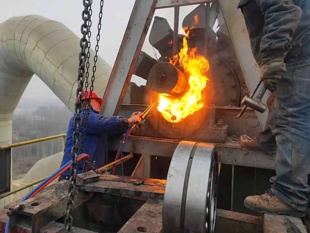 春节我在岗,库车天山4213磨循环斗提更换头架轴承,我们检修工作热情如火。