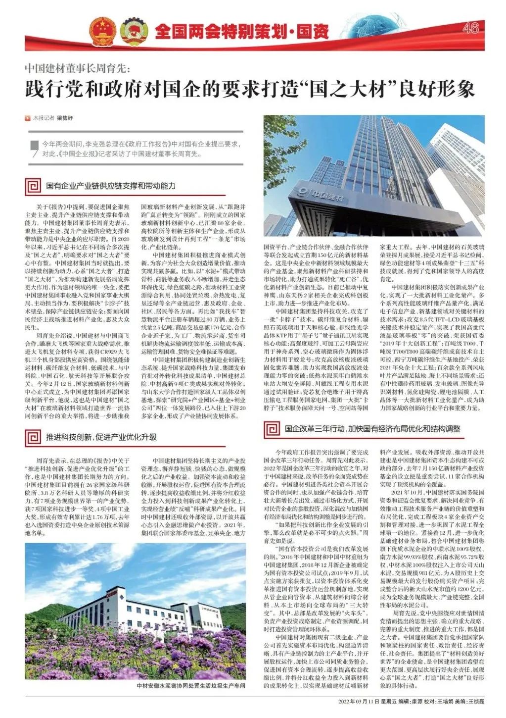 《中国企业报》两会特别策划 | 周育先:践行党和政府对国企的要求 打造“国之大材”良好形象