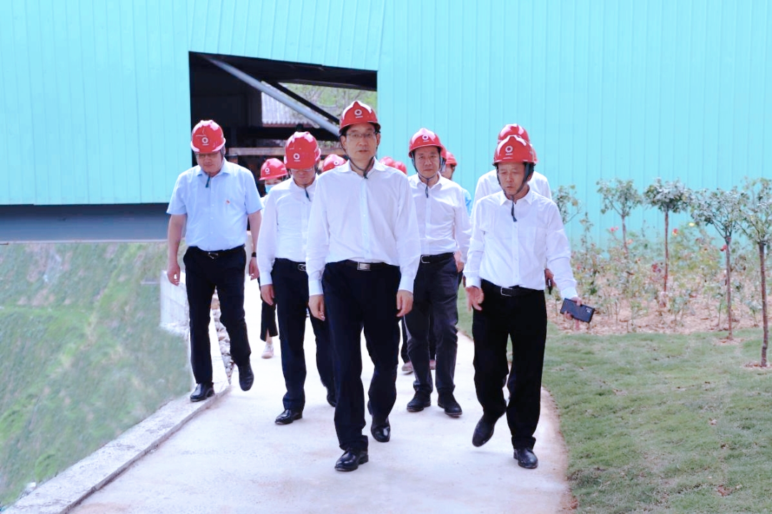 周育先一行率先赴九江瑞昌调研中建材新材料有限公司,听取了华东材料党委书记、总裁,中建材新材料董事长王盛伟关于瑞昌项目建设、智慧矿山、生产准备等汇报,并深入现场调研了矿山、骨料线、廊道建设情况。该项目自2021年3月开工,期间克服环保督察、特大洪水、新冠疫情等影响,在实际建设期不足一年的情况下,基本建成3000万吨/年超大型矿山骨料生产基地,周育先对此给予充分肯定,并对项目绿色化、智能化、高端化、精细化水平给予高度评价。关于下一步工作,周育先提出三点要求:一是做好规划设计,通过信息化、数字化、智能化实现企业未来的高效运营;二是加快项目建设,早投产早见效;三是加强防疫与安全环保,做好矿山复绿工作,继续稳定绿色发展。