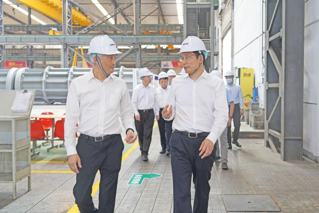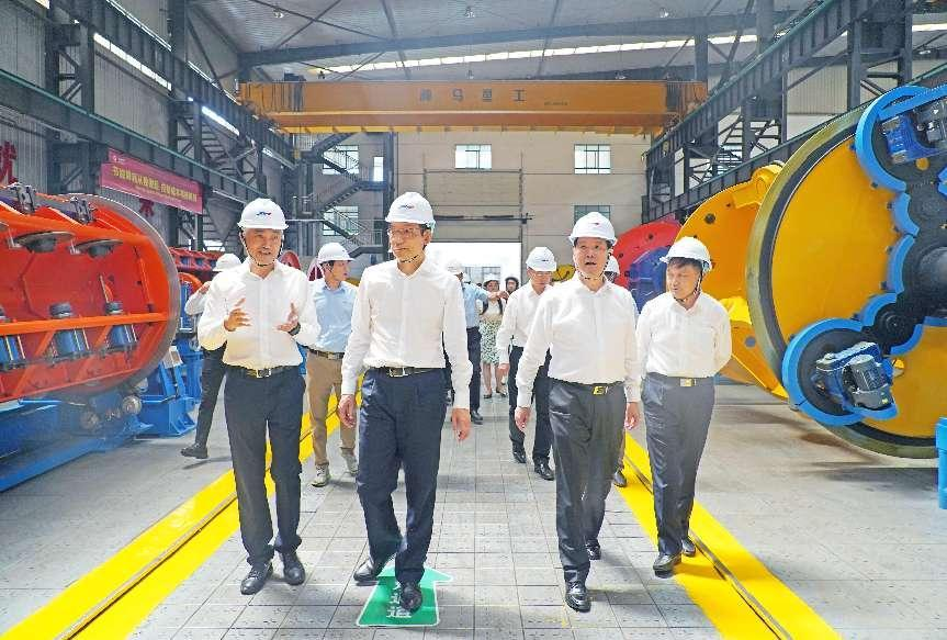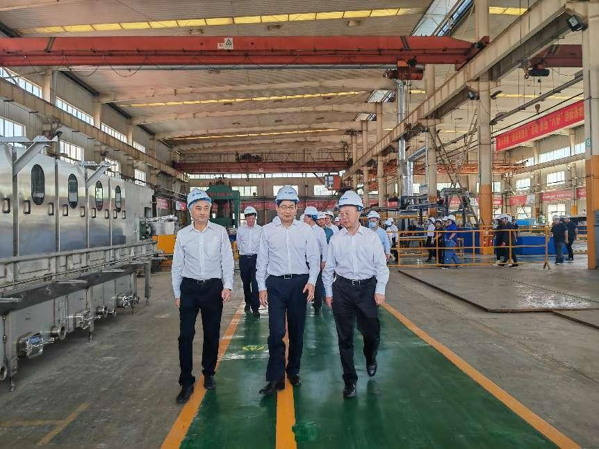 周育先一行深入生产一线,先后实地参观了合肥神马、中辰轻机的生产车间,详细察看了各企业装备制造的生产过程、现场管理,并听取了合肥神马、中辰轻机党委书记、董事长查正旺关于生产运营、科研进展、发明专利、安全环保、“三精”管理、疫情防控等相关方面的现场汇报。