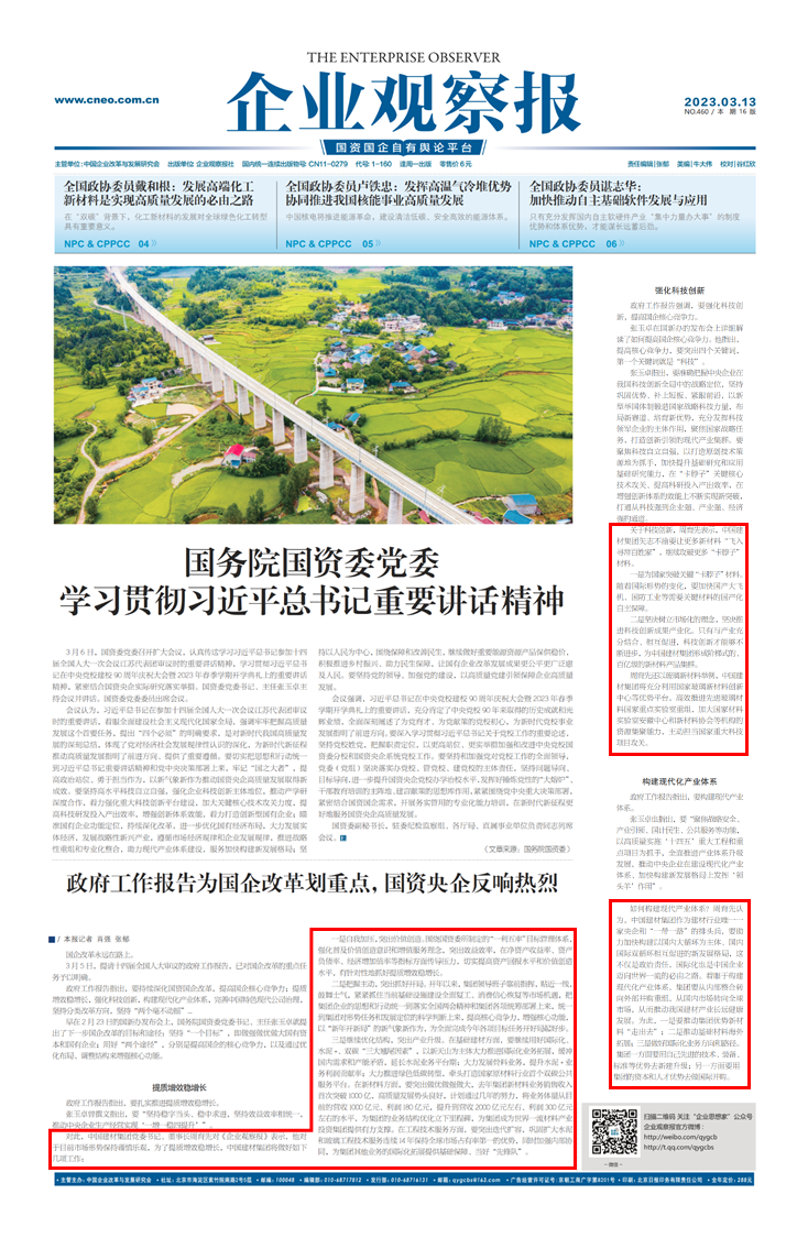 来源:企业观察报 发布时间:2023-03-20当前,全国上下正在深入开展学习贯彻习近平总书记在全国两会期间的重要讲话精神和全国两会精神,《企业观察报》“两会同期声”栏目刊登了《政府工作报告为国企改革划重点,国资央企反响热烈》,报道了日韩无码