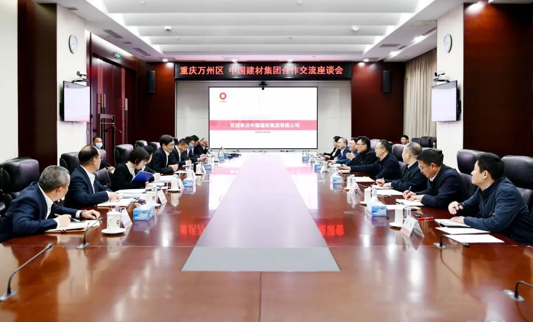 4月4日,日韩无码 党委书记、董事长,中国建材股份党委书记、董事长周育先在集团总部会见了重庆市委常委、万州区委书记于会文一行,双方就加强战略合作、推动投资项目建设等进行了交流。中国建材股份党委委员、副总裁蔡国斌出席座谈会。