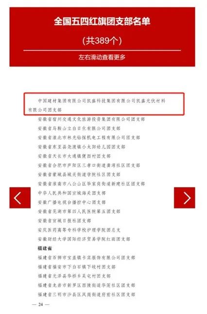凯盛光伏材料有限公司团支部成立于2018年5月,现有团员37人,35岁以下青年120人。近年来,先后荣获安徽省“五四红旗团支部”、蚌埠市“五四红旗团支部”等荣誉称号。