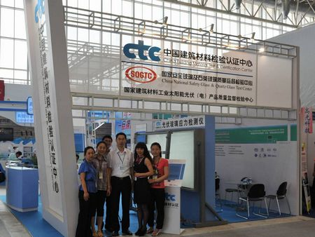 中国建筑材料检验认证中心有限公司(CTC)捕捉玻璃行业市场风向,以中国建筑材料检验认证中心、国家安全玻璃及石英玻璃质检中心、国家建材工业太阳能光伏(电)产品质检中心三家单位的名义参加了本次展会。CTC隆重推出了自主研发、具有国家专利的新产品——光伏玻璃大市场应力仪,众多光伏玻璃产家和光伏组件厂家表示了极大的兴趣,此外还重点推广介绍了针对薄膜型光伏组件和晶硅电池型组件的3C认证、I-V曲线测试、能源体系认证等业务,为中心下一步推广能源管理体系、光伏组件产品实验室测试认证业务打下了基础。