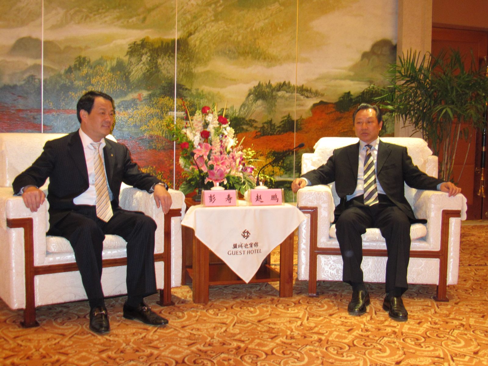 来源:中国建材工程 发布时间:2011-04-154月14日,中国建材工程董事长彭寿率团访问了江苏省盐城市。中共盐城市委书记、人大常委会领导赵鹏在盐城迎宾馆会见了彭寿董事长一行,双方就进一步加强合作充分交换了意见。