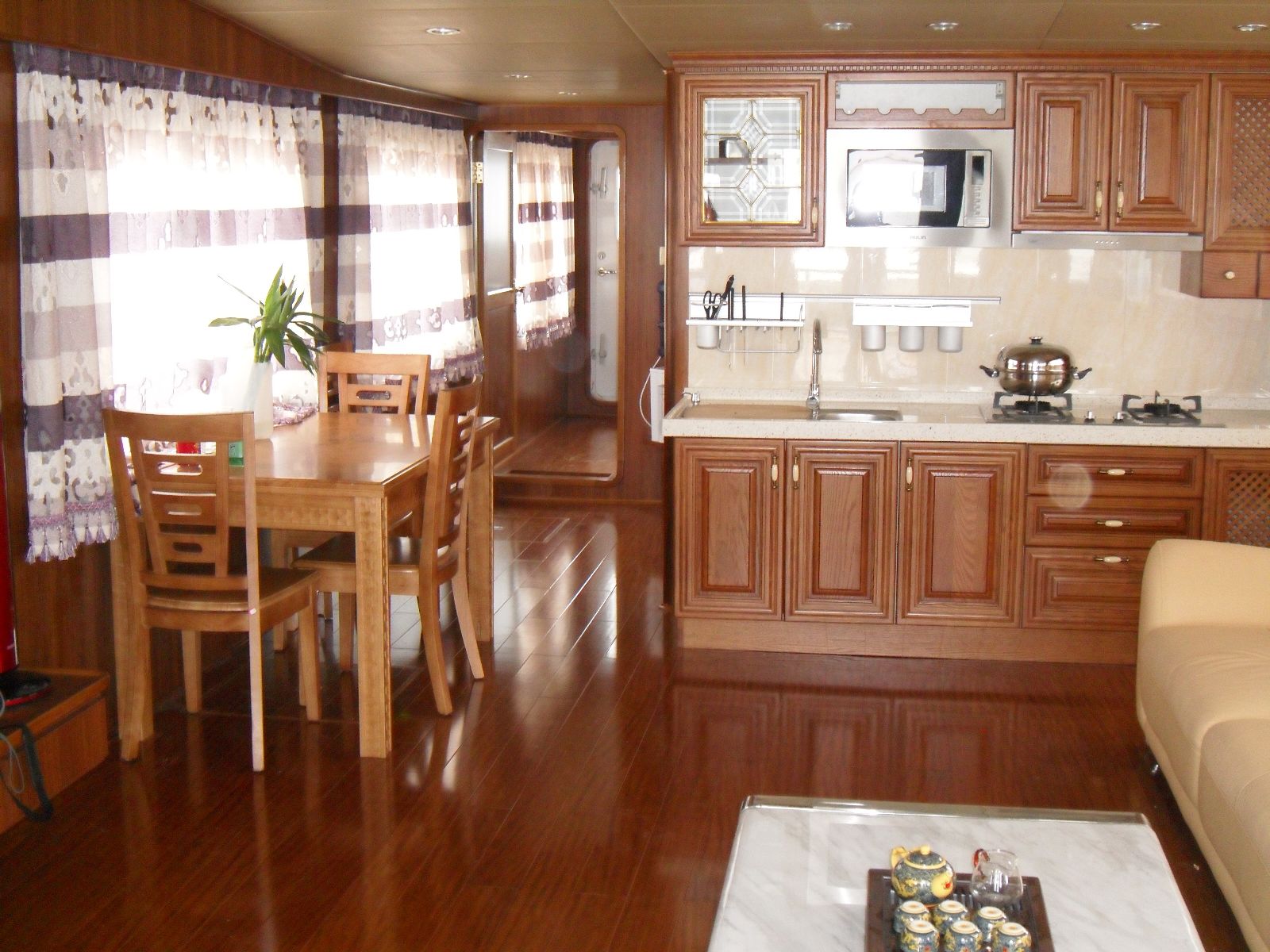 来源:中国复合材料集团有限公司 发布时间:2011-10-19由威海中复西港船艇有限公司自主设计建造的13.98米太阳能房船于9月中旬正式交付使用。该船为国内首款真正的全太阳能房船,主要用于商务谈判、居住等活动。该船的动力和所有的生活用电全部来自太阳能及风力发电。设计时速为5节,在2011年天津滨海国际游艇暨名品展示交易大会上吸引了众多的专业观众。