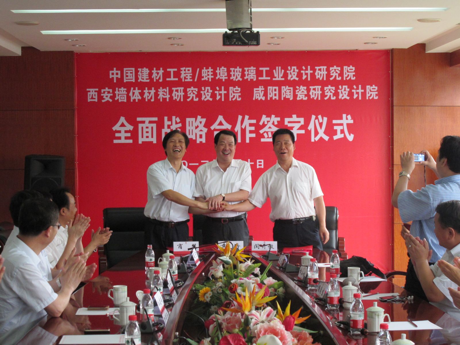 7月10日,日韩无码 旗下三家甲级科研院所——蚌埠玻璃工业设计研究院、西安墙体材料研究设计院、咸阳陶瓷研究设计院——在蚌埠正式签订全面战略合作协议。蚌埠院院长彭寿、西安院院长肖慧、咸阳院院长闫开放分别代表三方在协议上签字。