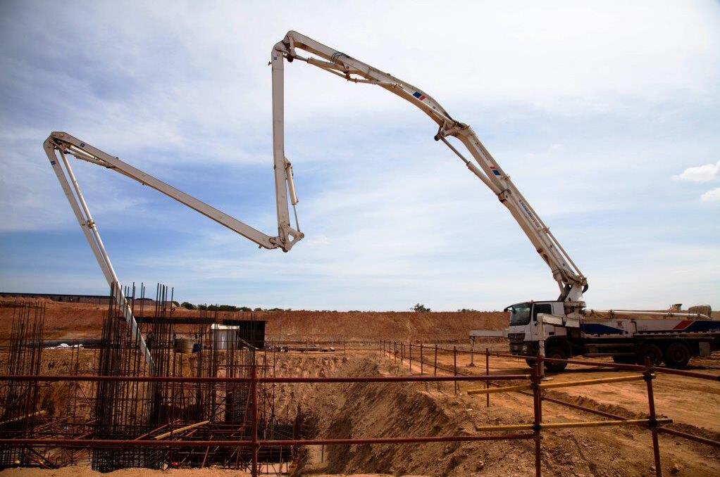 商品混凝土项目设备7月上旬从中国国内发货,同期开始土建基础施工,10月初设备运抵现场后即投入安装。经过中材Mpande公司及EPC单位严密组织,克服了雨季施工、原材料组织、大型工器具未到位等一系列困难,先后完成了大型设备起吊、组装、主辅机设备单机联动试车、混凝土配比从实验室到现场搅拌的多次试验。最终商品混凝土搅拌站按计划投入使用,这也标志着赞比亚建材工业园第一个建材产品正式投产。