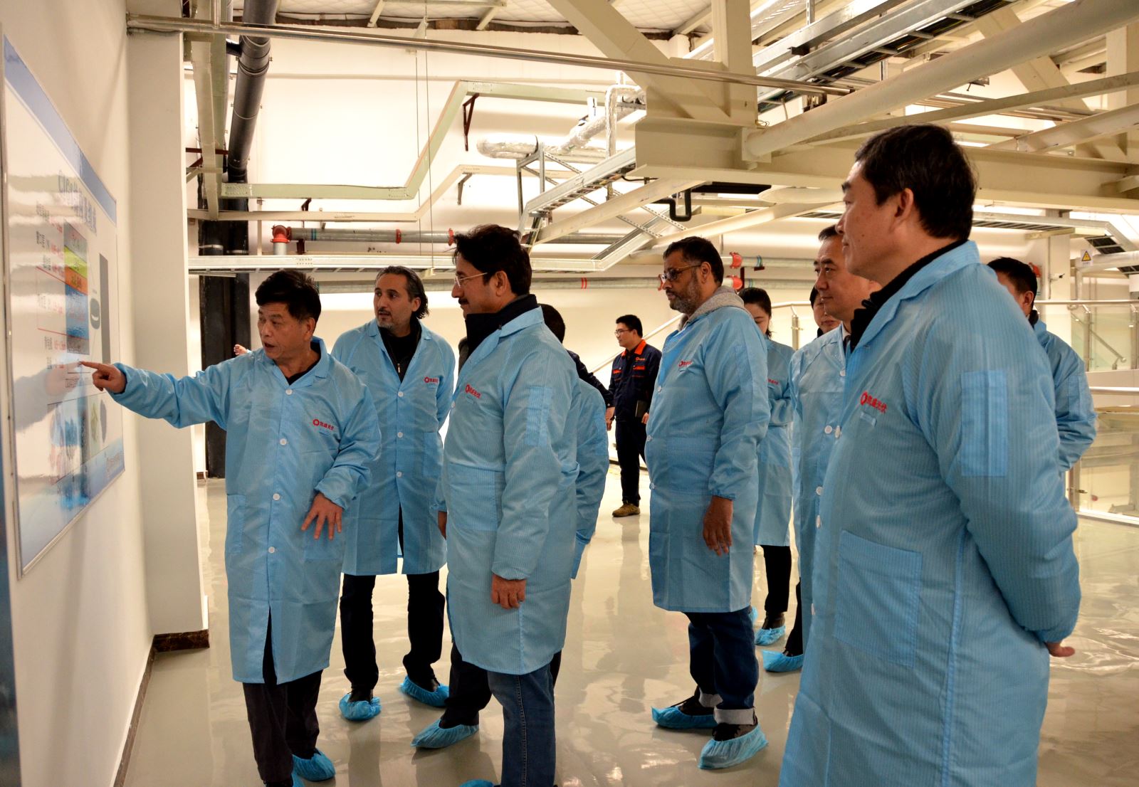 Abdulaziz详细了解了凯盛科技近几年取得的骄人成绩、掌握的先进技术、装备和知识产权以及创新转型经验等,参观了中国浮法玻璃新技术国家重点实验室、超薄玻璃生产线、年产300兆瓦铜铟镓硒薄膜太阳能电池项目生产线、蚌埠兴科深加工玻璃生产线和方兴光电柔性膜生产线。期间还听取了泰安中联水泥总经理齐勇关于工厂智能化生产管理情况、先进能耗、排放和管理效益指标的介绍。