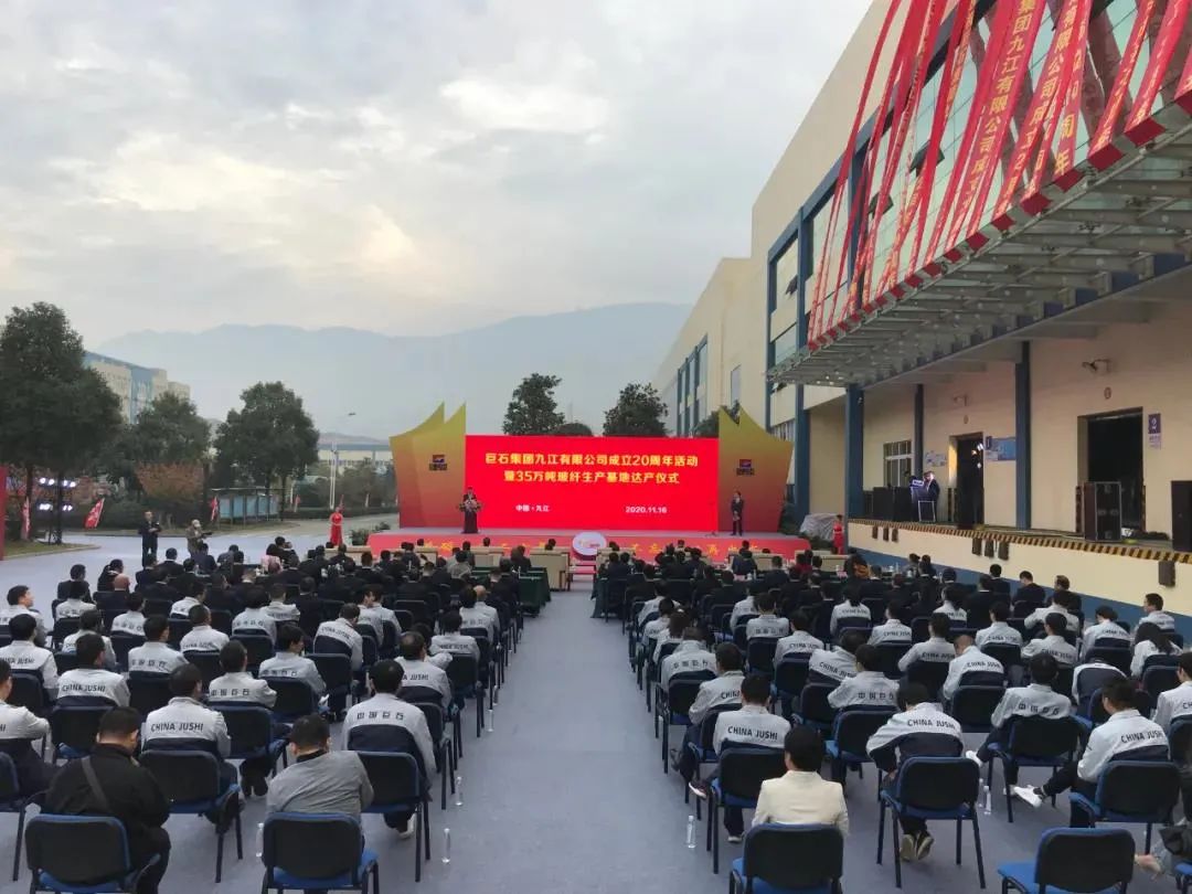 11月16日,巨石集团九江有限公司举办成立20周年暨35万吨玻纤生产基地达产仪式。九江市政府、九江经开区相关领导,中国巨石高管、股东代表、客户和供应商代表,见证巨石九江发展的退休干部代表、职工代表以及新闻媒体共计200多人参加仪式。
