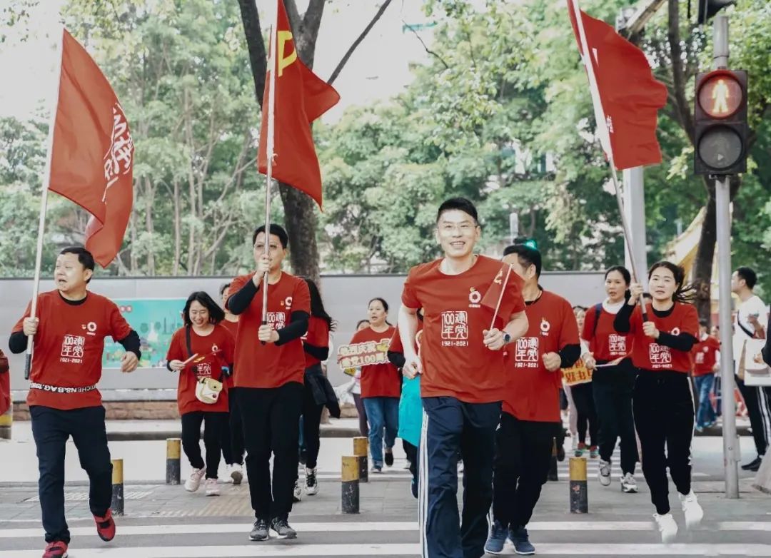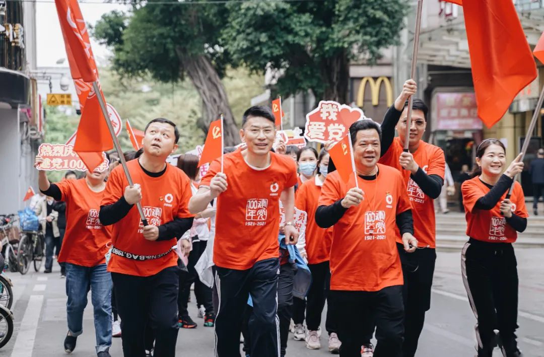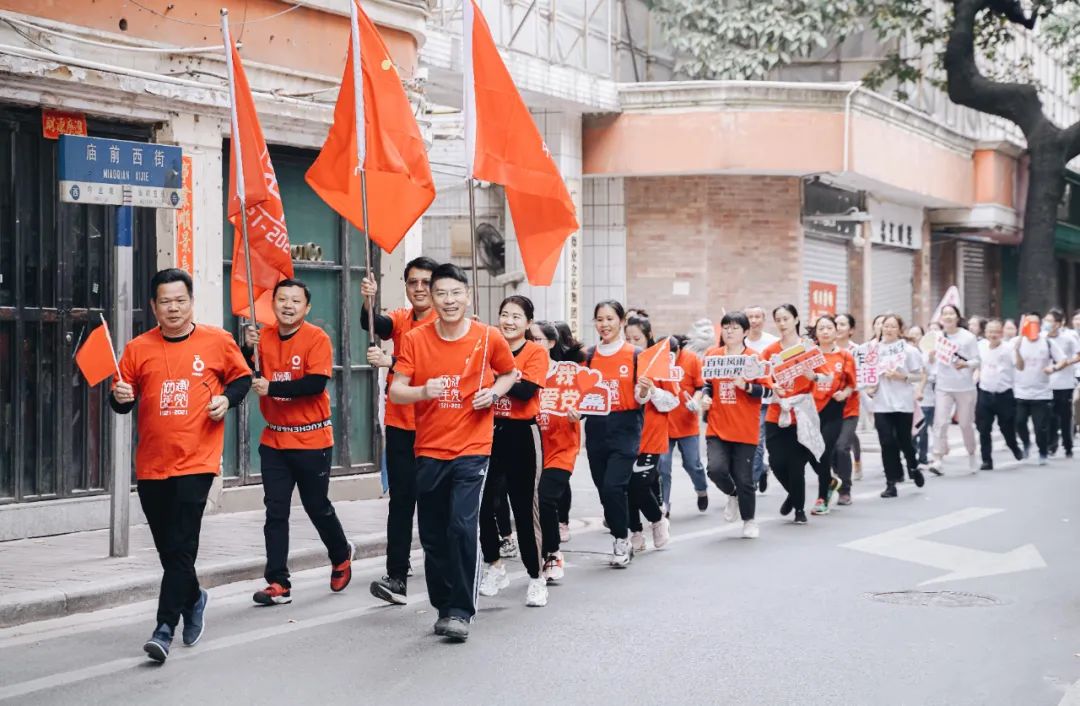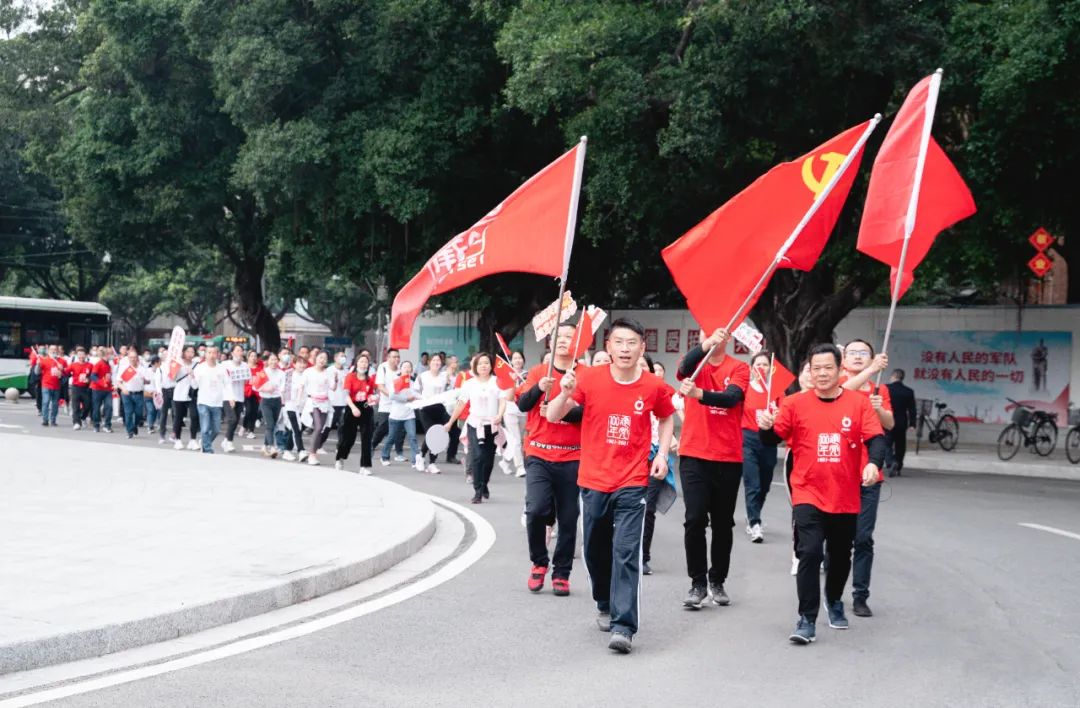 上午9时,健跑活动正式开始。本次健跑活动共100人参与,寓意“建党100周年”。其中,80后占比80%,这是一支充满青春活力的队伍,让我们吹响青春的号角,放飞心中的梦想,接过历史的长棒,奋勇向前。跑步途经烈士陵园最终到达农民运动讲习所。