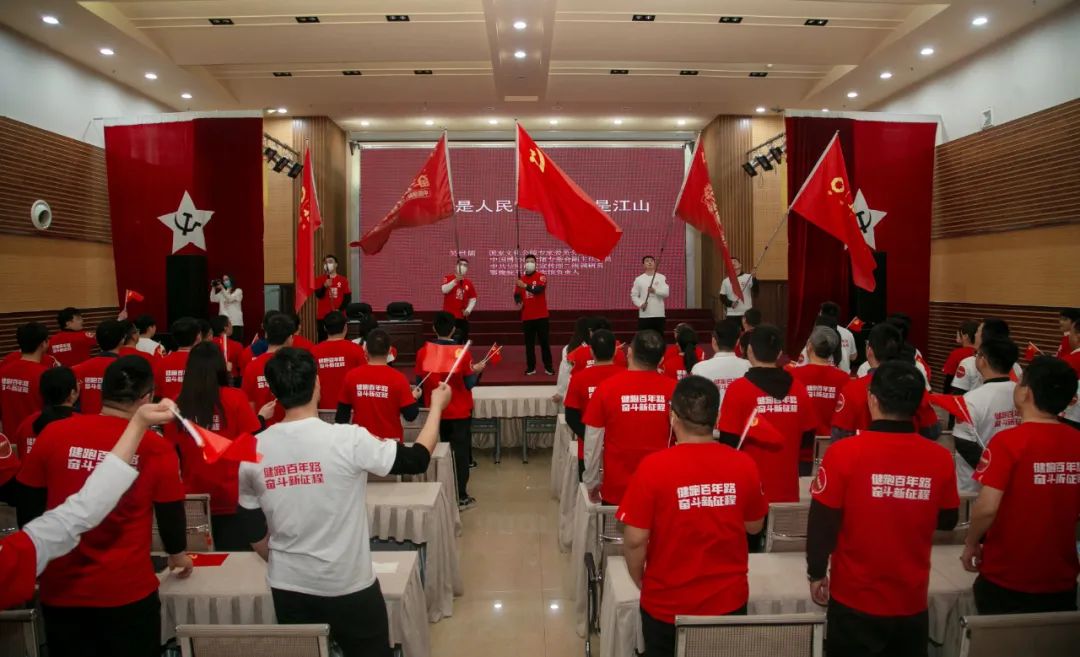 活动现场,参与人员站成心形、摆出比心手势和数字“100”字样进行拍摄留念,百人举旗,舞动党旗,寓意党旗飘飘四季如歌、伴我们走过岁月峥嵘,寓意党旗飘飘江山如画、领我们奔向时代高峰。