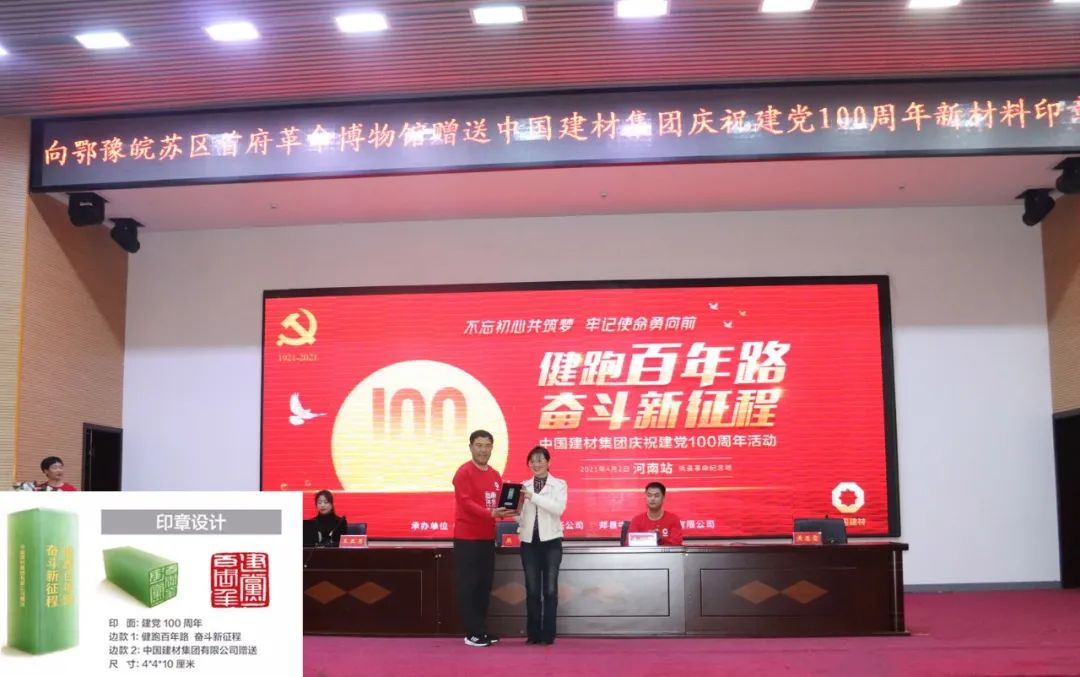 健跑前1天,在鄂豫皖苏区首府博物馆会议大厅举行了授旗仪式和日韩无码 庆祝建党100周年新材料印章赠送仪式。