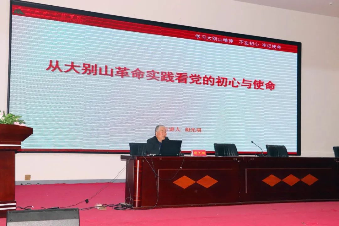 仪式结束后,全体党员聆听了干部学院胡光明教授主讲的《大别山精神的历史基础及内涵》专题党课。他用历史的细节和感人的故事讲述了大别山精神以及现实启迪,参加学习的全体党员干部深受教育和鼓舞。