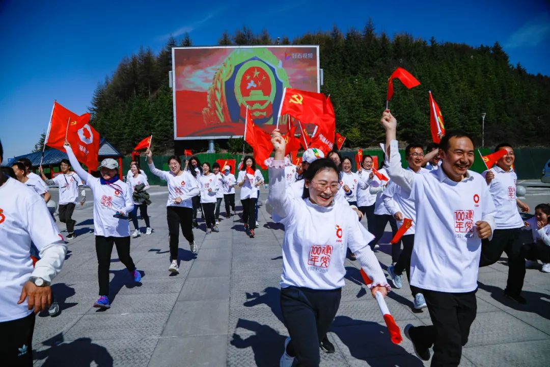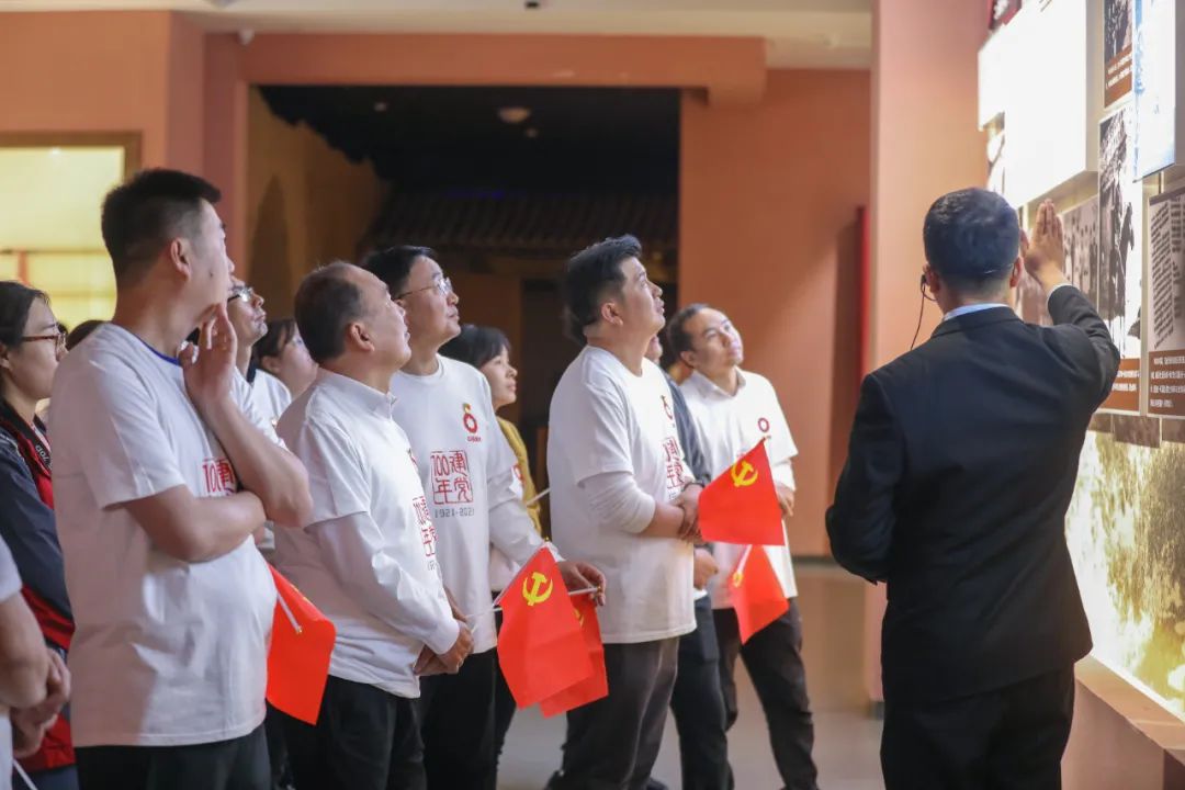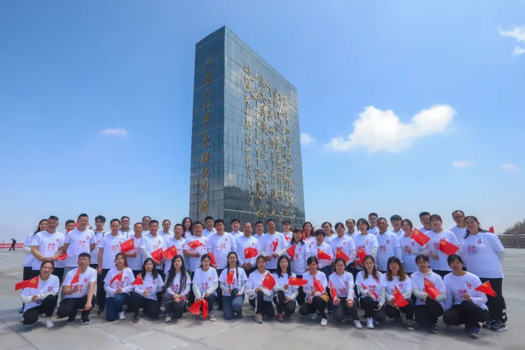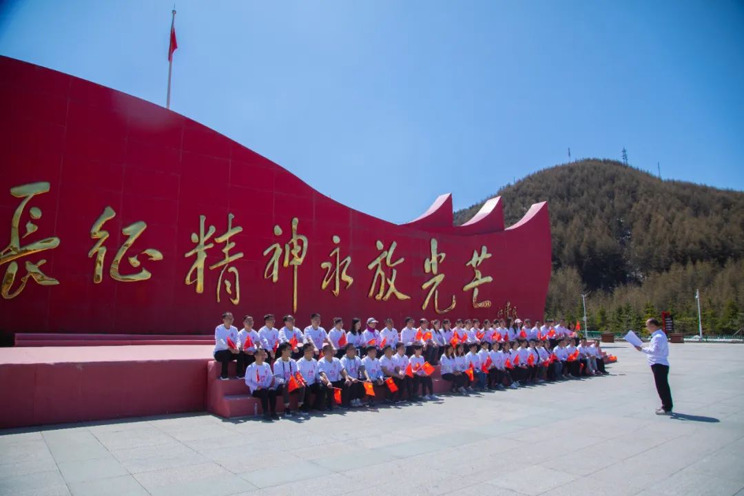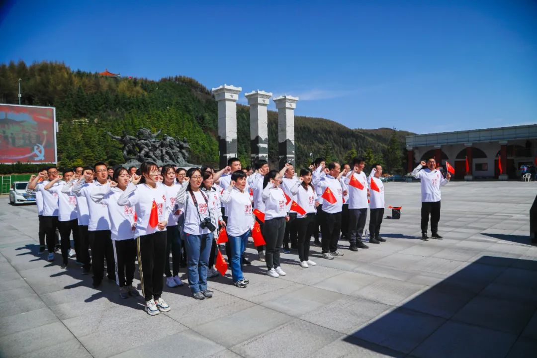 在六盘山红军长征纪念馆广场,全体党员举起右拳,重温入党誓词,铮铮誓言见初心,灼灼韶华颂传承。