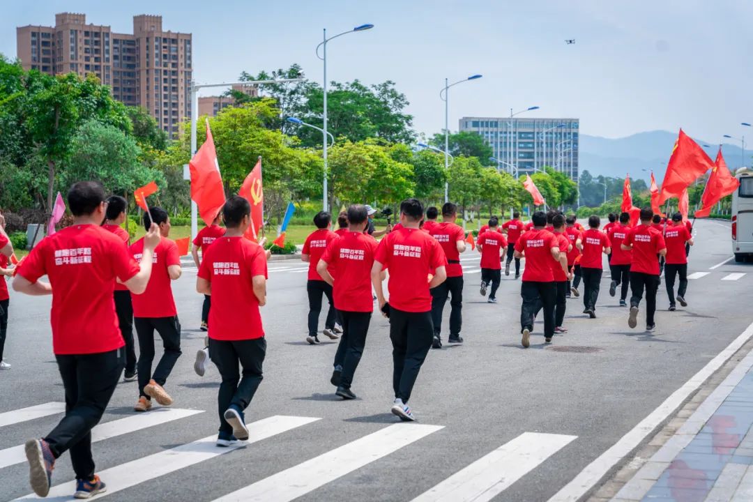 本次健跑活动设在荣昌堂广场,设为环形路线,分为7.23公里全程跑和2.5公里迷你跑。7.23公里旨在纪念中国共产党第一次全国代表大会于1921年7月23日召开,2.5公里寓意着中国工农红军主力的二万五千里长征。大家在高高飘扬的党旗引领下,昂首奋发,踏上健跑征程。5月的南方绿树成荫、生机勃勃,沿着预设的路线,大家迈着矫健的步伐,汇聚成一股磅礴的力量,奋勇前进。