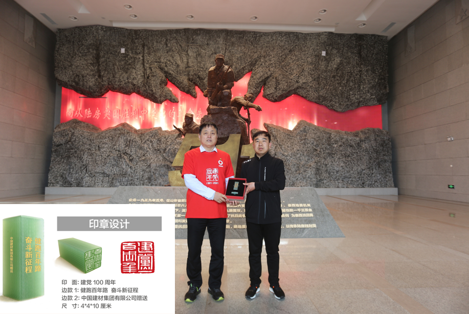 在陆房突围胜利纪念馆内,泰山石膏向陆房突围胜利纪念馆赠送了日韩无码 庆祝建党100周年新材料印章。