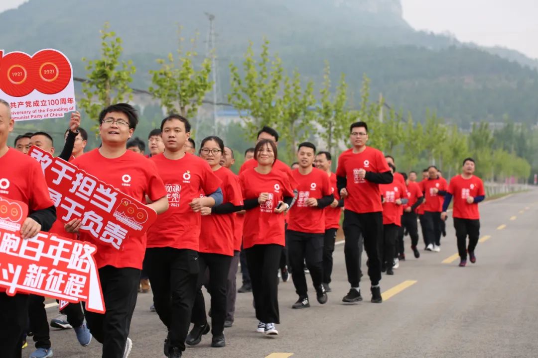 泰山石膏有限公司党委书记、董事长贾同春在致辞中讲到,陆房突围战是抗日战争进入相持阶段后,八路军为挫败日寇追击、巩固和扩大山东抗日根据地所进行的一次重要战斗,为坚持泰西根据地并开创山东抗战新局面保存了骨干力量,对山东抗战乃至全国抗战具有至关重要的影响。“健跑百年路 奋斗新征程”活动就是引导大家回顾党的历史,缅怀革命先烈、赓续共产党人的精神血脉,坚定理想信念,用党的奋斗历程和伟大成就鼓舞斗志、明确方向,用党的光荣传统和优良作风坚定信念、凝聚力量,用党的实践创造和历史经验启迪智慧、砥砺品格,做到学史明理、学史增信、学史崇德、学史力行,进一步增强党组织的凝聚力和战斗力。希望全体党员和干部职工以活动的开展为起点,学党史、悟思想、办实事、开新局,从百年党的历史中总结经验,传承红色基因,弘扬党的光荣传统和优良作风,在工作中发扬敢于拼搏、不惧困难的精神,在牢记初心使命上见行动,在主动担当作为上见行动,在弘扬光荣传统上见行动;传承红色精神、汲取革命智慧,把学习成果转换为工作动力和成效,进一步坚定发展信心,坚持党建引领,坚定不移提升核心竞争力,为实现高质量发展谱写新篇章,以优异的经营业绩向建党100周年献礼。