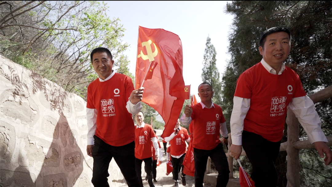 健跑活动结束后,在广场摆出100字样,并齐唱歌曲《没有共产党就没有新中国》,9名生产一线同志饱含深情的朗诵诗歌《党的礼赞》,向党的百年诞辰献礼。