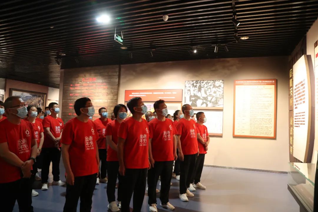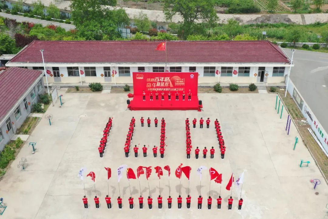 全体党员在广场摆出“100”字样,并齐唱歌曲《没有共产党就没有新中国》,向党的百年华诞献礼。