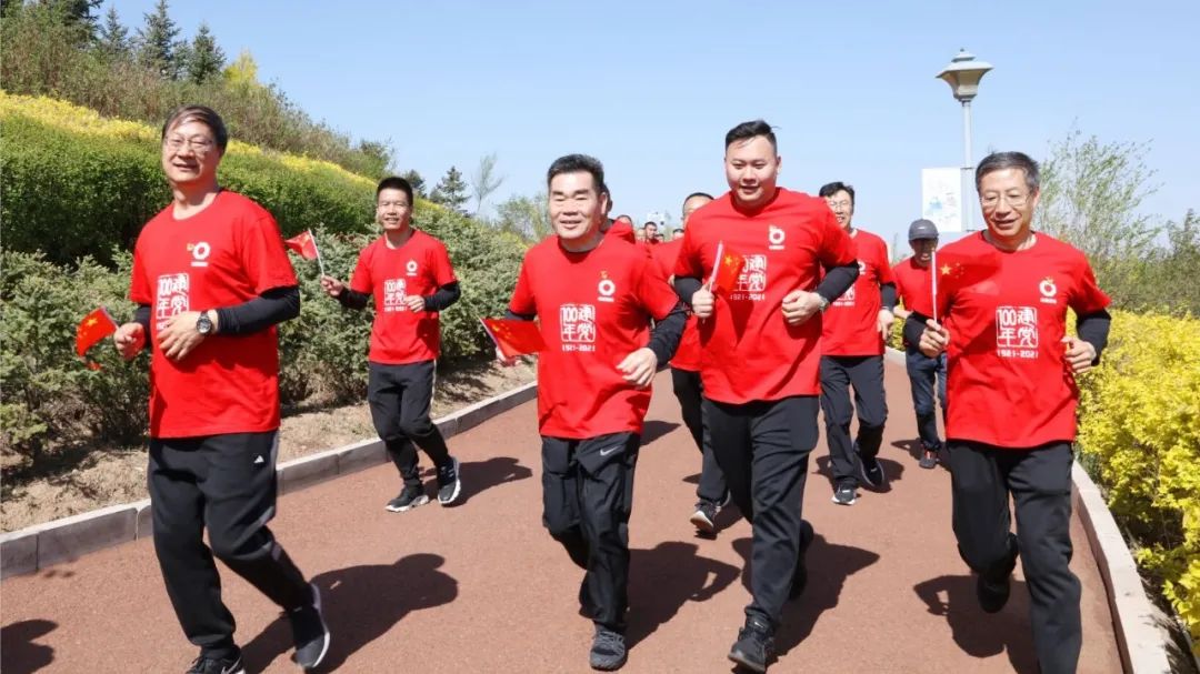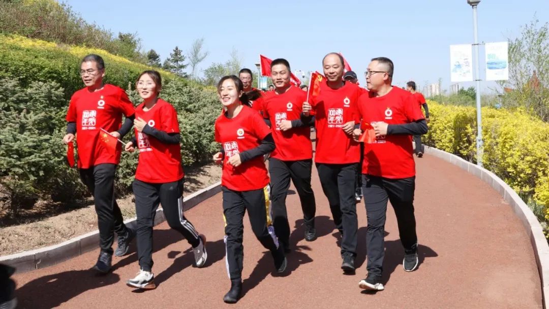 健跑活动以将军园为起点,全程2.1公里,寓意中国共产党于1921年成立。活动现场气氛热烈,大家在高高飘扬的党旗引领下,昂首奋发。整个健跑过程,大家情绪高昂、你争我赶,展现出了良好的精神风貌和一往无前的坚定信心。