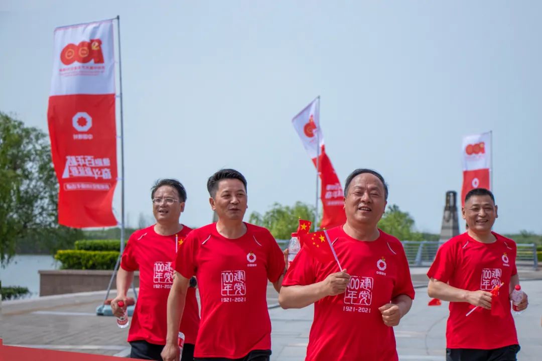 本次健跑活动在渡江战役纪念馆前举行,共设置2条健跑路线,分别是“渡江新起点”4.20公里,寓意渡江战役打响的日期4月20日,以及“奋斗百年路”2.1公里,寓意1921年党的诞生与2021年建党100周年。初夏的巢湖之滨,绿树成荫、生机盎然,活动现场,大家迈着矫健的步伐,用脚步丈量红色征程,用初心收获信仰力量,身穿统一服装的健跑队伍在美丽的林荫步道上奋勇争先,成为巢湖之畔一道靓丽的人文风景线。
