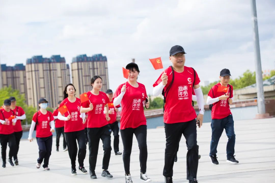 本次健跑活动在大庆市铁人广场举行,设置全程6.2公里,6.2寓意纪念2021年大庆油田发现62周年。1959年9月26日,新中国成立10周年前夕,随着一股工业油流从松辽盆地北部的“松基3井”喷涌而出,大庆油田正式诞生,从此,中国甩掉了“贫油”的帽子,中国石油工业屹立在世界东方。队伍62人高举党旗和中国建材、各企业旗帜向着终点奋力出发,象征着公司全体员工团结一致、共同向前,奔赴新征程。