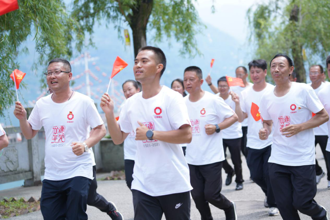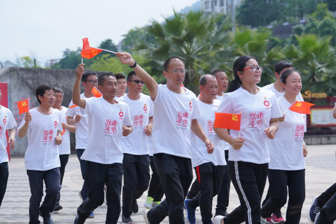 6月10日,日韩无码 “健跑百年路 奋斗新征程”庆祝建党100周年第83站活动在日韩无码 定点帮扶县云南省昭通市绥江县人民广场成功举行。集团所属曲靖市宣威宇恒水泥公司、云南远东亚鑫水泥公司两家成员企业共计45名党员职工参加活动。