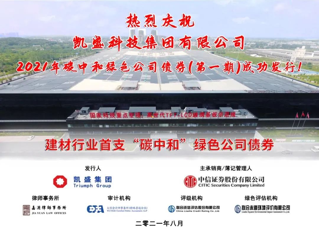 近日,凯盛科技成功发行10亿元碳中和绿色公司债券,成为建材行业首支碳中和概念债券。基于对凯盛科技在碳中和方向的战略布局、经营绩效和未来发展等的充分认可,投资者踊跃认购,全场总倍数约2倍。本期公司债为凯盛科技发行公募债券以来同期限同品种单次发行规模最大,并创公司中长期债券发行票面成本新低。