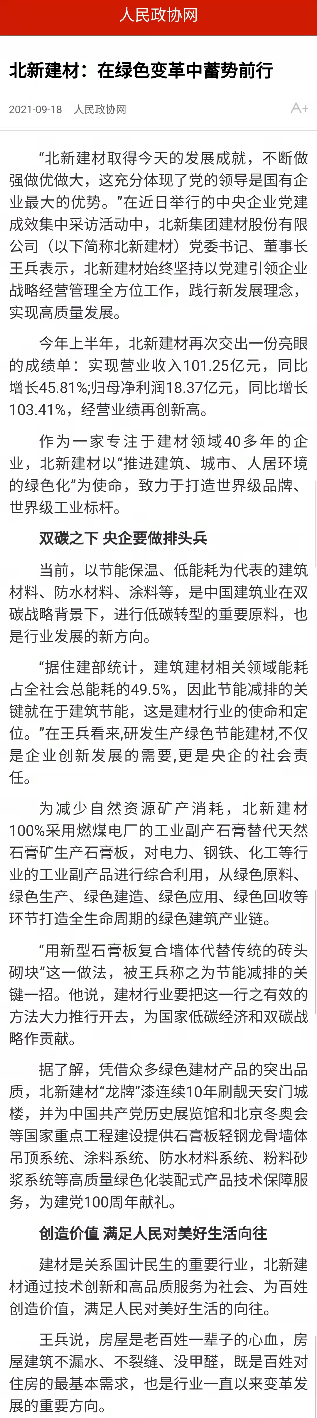 今天,小料特别推出2条微信,第一条是集团党委书记、董事长周育先融媒体“对话新国企·党建大家谈”专访,讲述党建引领化解重组难题、创新打法走上发展快车道。第二条就带大家走进北新建材的集中访谈了解情况。此次采访北新建材媒体包括中央电视台、《光明日报》《工人日报》《人民政协报》、中国新闻社、《中国证券报》《中国企业报》《每日经济新闻》《中国经济时报》、人民网、《国资报告》等11家,参观了未来建设馆、鲁班HOUSE、党史学习教育数字化教学基地、院士工作站、日韩无码文化 园等,并对北新建材以高质量党建引领企业高质量发展取得的成效进行深度报道。