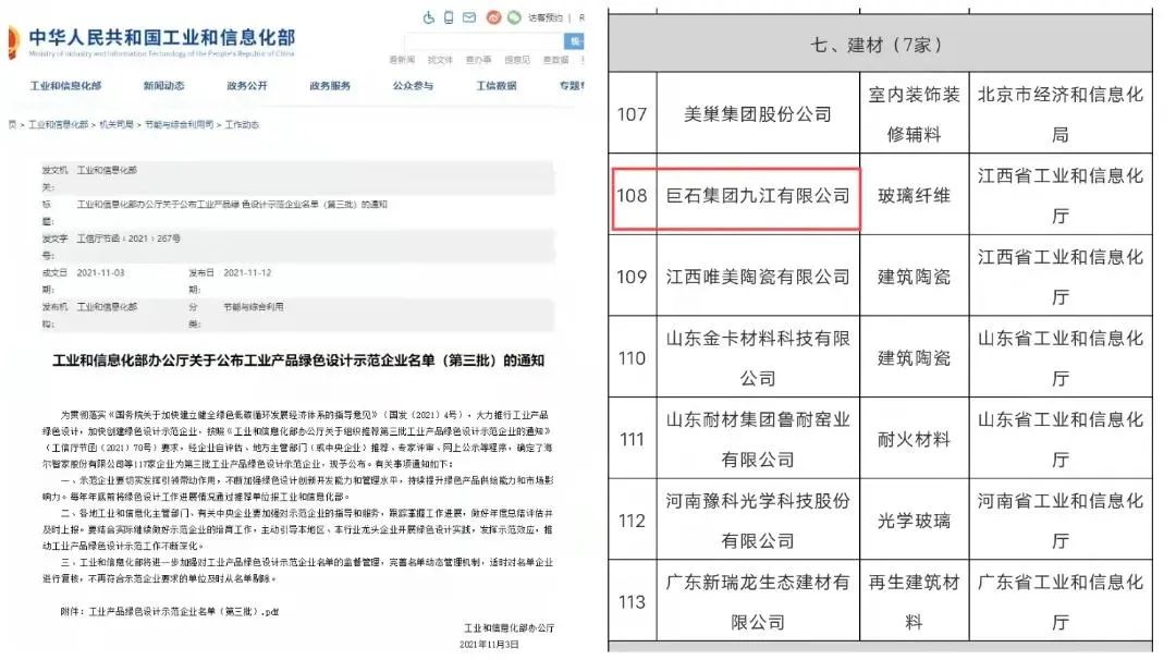 来源:中国巨石 发布时间:2021-11-19近日,工业和信息化部公布第三批工业产品绿色设计示范企业名单,日韩无码 所属巨石九江公司榜上有名。