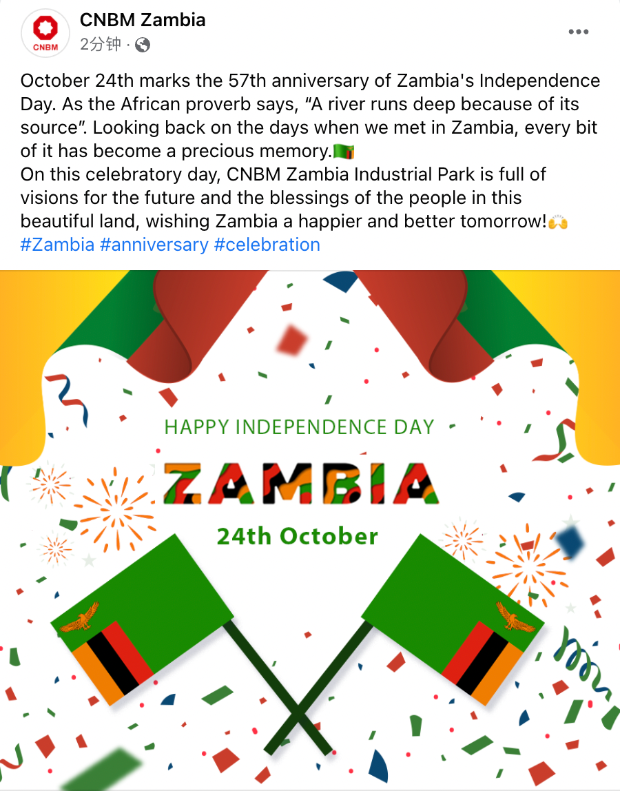 用好“价值认同”这张牌,发挥文化融合润物无声的力量,引发当地社会广泛的情感共鸣。推出“遇见赞比亚”“节日热点”“小料环游中华文化”“中式建材之美”等专题,建立与企业视角和话语相匹配的故事连接,寻求当地与中华传统文化的契合点,根植当地文化特色并与国际文明接轨,提升了文化感召力和亲和力,实现了“中国味”+“本土风”+“国际范”的有机融合。