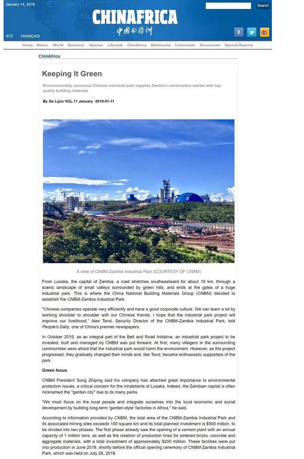 中国建材赞比亚工业园