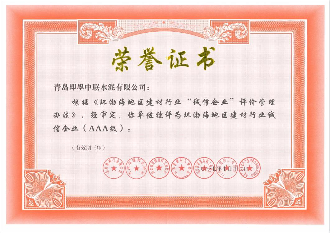 青岛即墨中联坚信品质是诚信经营的根本,只有确保水泥产品的质量才能不断开拓市场,扩大影响力,真正把企业做大做强。因此,公司全面推行质量管理体系落实,抓好质量考核,不断提升管理能力和工作效率。此外,公司还不断通过技术改造、优化产品配比、大胆尝试外加剂等辅助原材料,更好地保证产品质量的稳定,顺利通过了ISO9001质量管理体系认证和水泥产品认证。