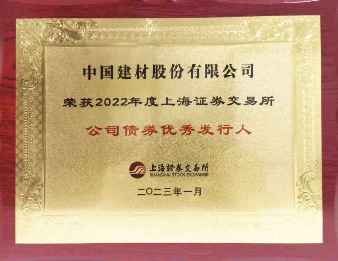 中国建材股份连续六年荣获上海证券交易所“公司债券优秀发行人”称号