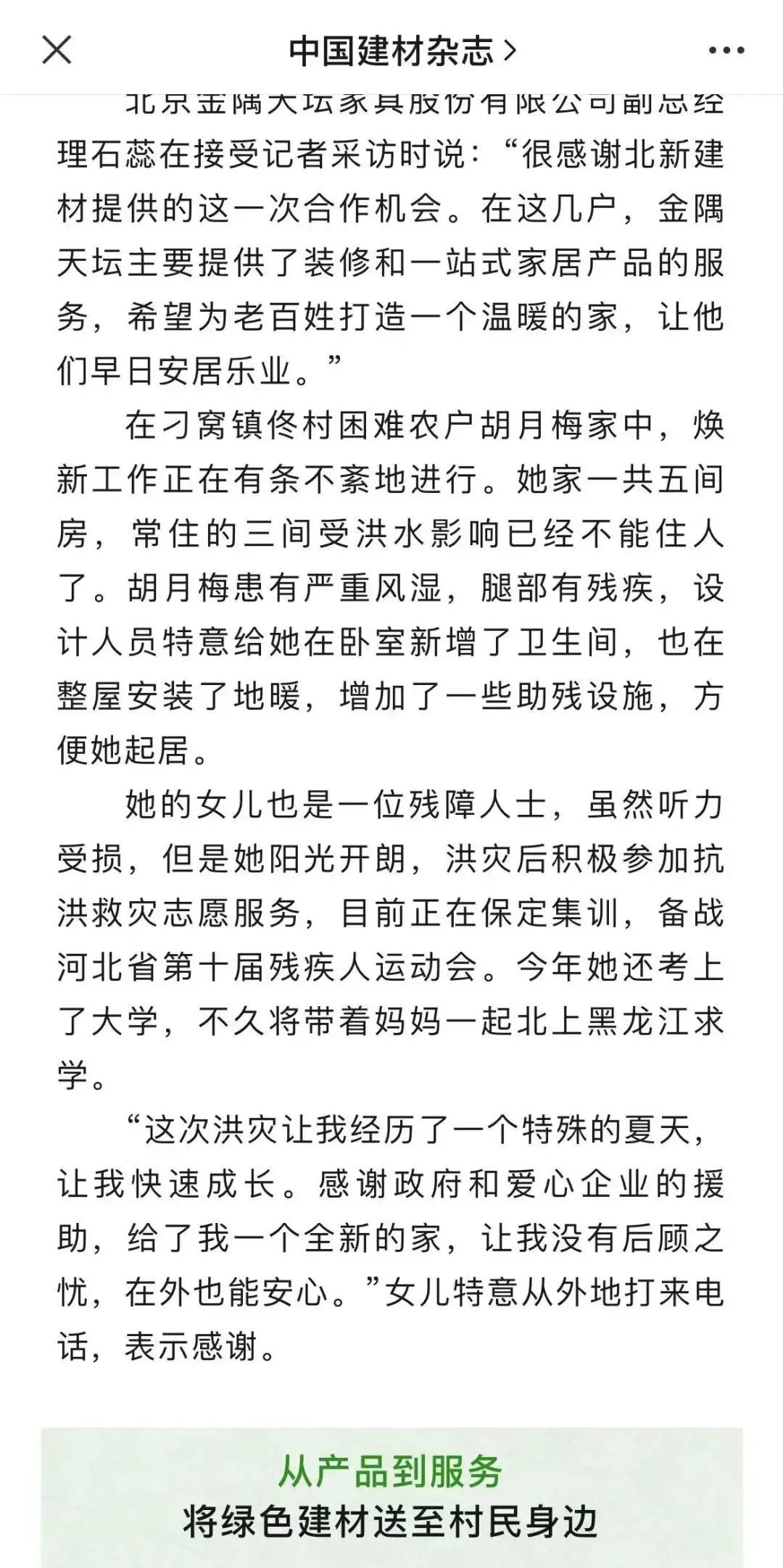 绿色高品质建材忙下乡北新建材联合天坛家具援助涿州重灾户一周焕新颜