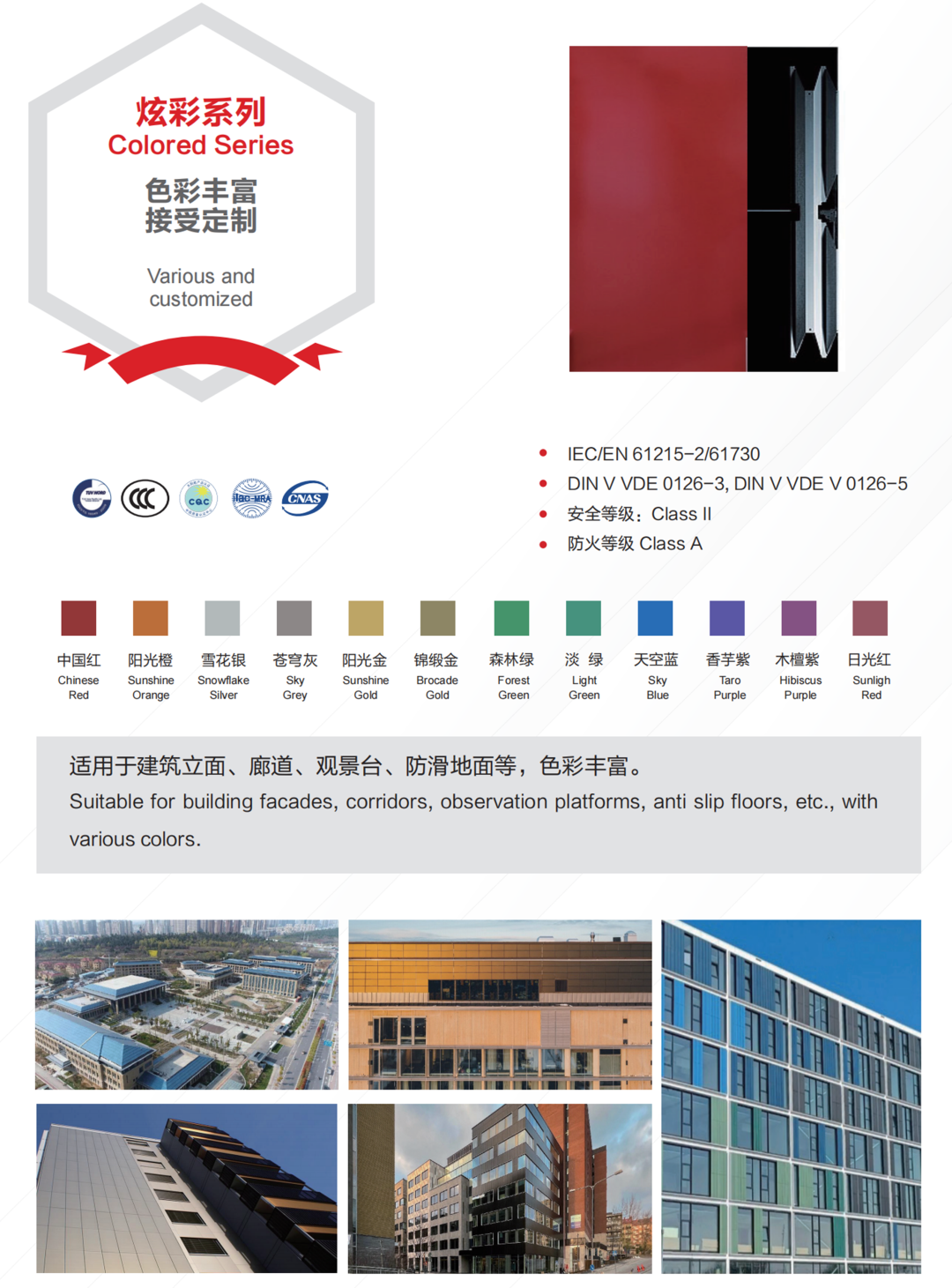 碲化镉系列产品具有抗热斑效应、弱光优势、低温度系数、色彩均匀、灵活定制和安全绿色等优势,正是这些所具有的特性,让碲化镉发电玻璃成为各类BIPV项目的优秀选择。