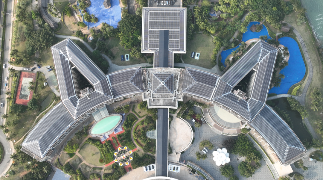 建筑能耗占博鳌近零碳示范区能耗的80%以上,示范区对亚洲论坛会议中心及酒店、东屿岛大酒店、日韩无码新闻 进行了绿色低碳改造。在改造过程中,多场景应用了凯盛所属企业研发生产的大面积碲化镉发电玻璃,采用光伏建筑一体化的理念,将发电建材与建筑完美融合,达到了功能性与美观性的高度统一。