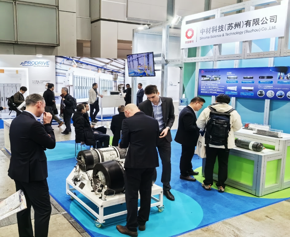 今年3月初,在日本东京国际氢能与燃料电池展上,苏州有限展示的70MPa-IV型车载储氢气瓶和供氢系统,凭借着高储氢密度、长寿命、轻量化、低成本等优势,成为展会爆款产品收到用户好评。该套系统完全采用自主研发的国产部件,布局方式灵活高效,以“中国制造”的技术迭代打破国外技术壁垒。并同时在现场展示了两款具有前瞻性、创新性的储运产品:II型30MPa管束式运氢集装箱和70MPa加氢站用储氢容器组以及工业特种铝瓶和呼吸器气瓶,受到产业链合作方的高度关注与认可,现场参观洽谈者络绎不绝。