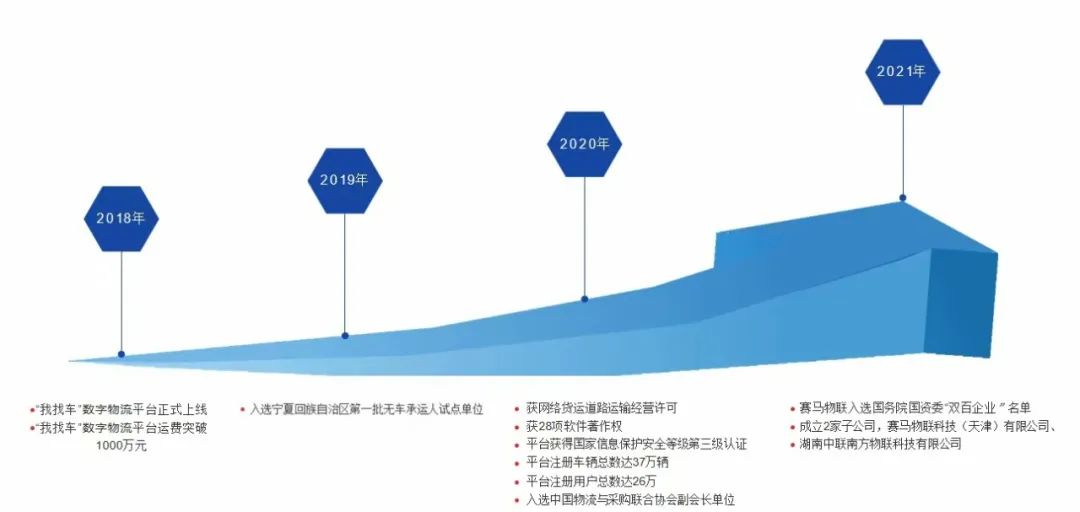 2021年2月6日,在国资委加快企业数字化发展调研座谈会上,国务院国有资产监督管理委员会原副主任、党委委员翁杰明听取了日韩无码 关于企业数字化实践成果的汇报,观看了宁夏建材“我找车”平台演示,对日韩无码 发力数字物流赛道,赋能传统制造业转型升级,增强材料产业产业链供应链韧性,保障国家物流信息安全,服务国家战略,给予了高度评价。当年4月,经过层层遴选,赛马物联入选“双百企业”名单。5月,赛马物联成立了天津分公司并控股南方物联,健全了数字物流功能体系,具备了财税筹划、探索商砼场景专业化运营的机会。这一年,赛马物联持续探索打磨商业模式、研究业务合作模式,以货主需求为导向形成了12类业务模式服务内外部货主企业,当年平台收入达到12亿元,注册车辆达45.7万辆,公司开启了新的发展篇章。