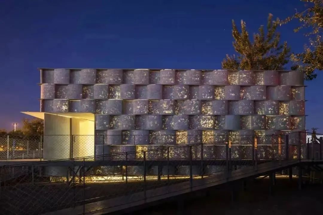 杭州滨江三桥亚运公园护栏,采用了预制蓝色透光混凝土。漫步在暮色笼罩的钱塘江旁,远处的城市灯火与近处的围栏交相辉映,令人无比惬意。