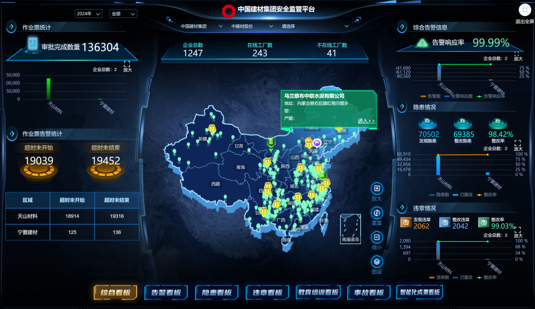 各层级安全管理者可透过系统中的综合看板、综合分析等关键指标,直接掌握成员企业的安全管理工作情况,对其进行垂直监管和高频度线上“四不两直”,进而实现全局掌控,不仅强化了管理者的监管能力,也提升了成员企业的安全管理水平。