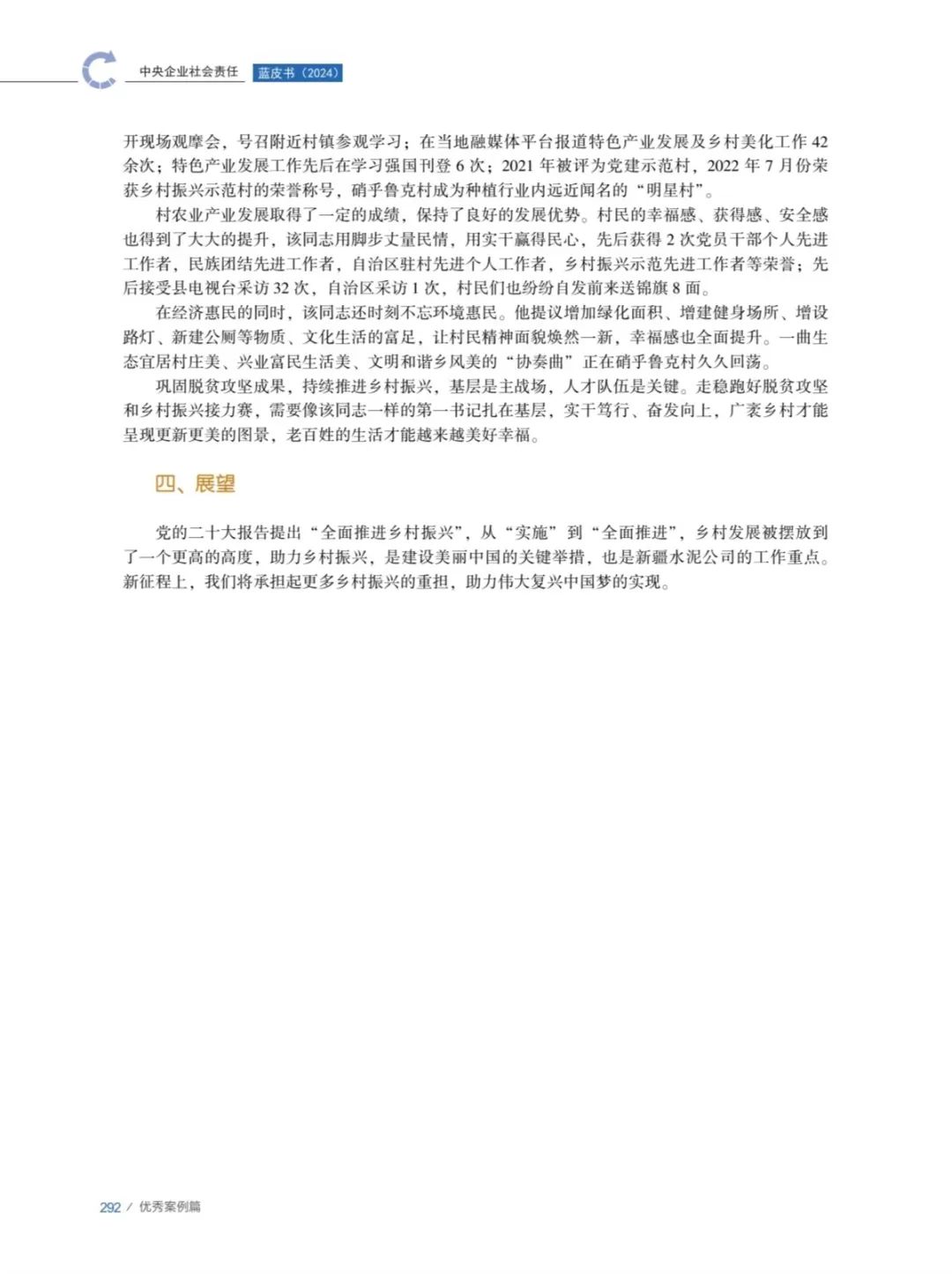 《奏响乡村振兴主旋律,体现央企责任与担当》入选《中央企业社会责任蓝皮书(2024)》“共同富裕篇”优秀履责案例